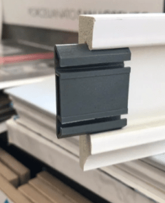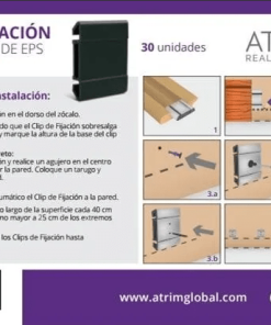Clips de fijación recomendados para acelerar la instalación o para aplicar en muros fuera de escuadra.Utilizar 6 clips de fijación en una tira de guardapolvo de 2,40 m.