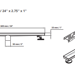 Desagüe lineal ajustable de acero inoxidable AISI 304 acabado mate de 1 mm de espesor, diseñado para reemplazar la rejilla tradicional y crear un plano único de continuidad en el piso de la ducha obteniendo mayor capacidad de drenaje.