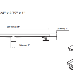 Desagüe lineal ajustable de acero inoxidable AISI 304 acabado negro mate de 1 mm de espesor, diseñado para reemplazar la rejilla tradicional y crear un plano único de continuidad en el piso de la ducha obteniendo mayor capacidad de drenaje.