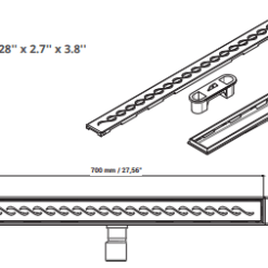 Desagüe lineal plástico con tapa de acero inoxidable AISI 304 acabado mate de 0,8 mm de espesor, diseñado para reemplazar la rejilla tradicional creando un plano único de continuidad en el piso de la ducha y obtener mayor capacidad de drenaje. Brinda una experiencia superior gracias a su filtro de pelos y sifón built-in que puede ser retirado para una fácil limpieza.