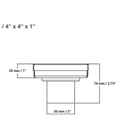 Desagüe cuadrado de acero inoxidable AISI 304 de 1 mm de espesor y altura regulable que se adapta al grosor del revestimiento garantizando el desagote correcto del agua. Diseñado para reemplazar la rejilla tradicional y crear un plano único de continuidad en el piso de la ducha obteniendo mayor capacidad de drenaje.